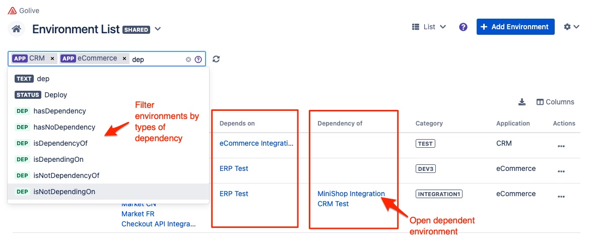 Learn how you can manage dependencies between your applications and environments in Golive.