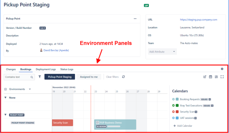Environment Panels allows you to display detailed information related to the current Environment. Environment Panels are displayed at the bottom of the Environment Dialog and the Environment Detail Page: