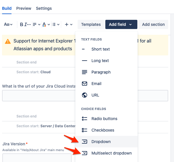Add a new “Dropdown” or “Multiselect dropdown” field: