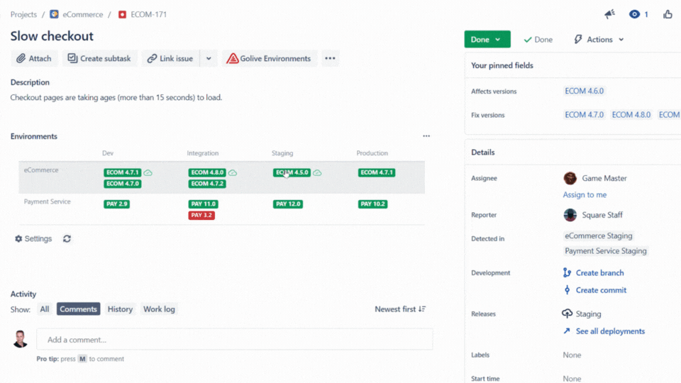 Golive Cloud is natively integrated with the Jira Software Cloud Deployment API.