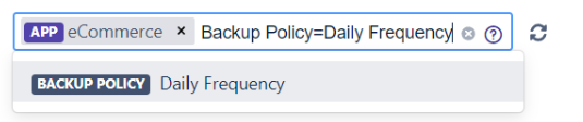 You can filter Environments using their Attributes values. For instance, all Environments with the Backup Policy attribute containing the Daily Frequency chain of characters: