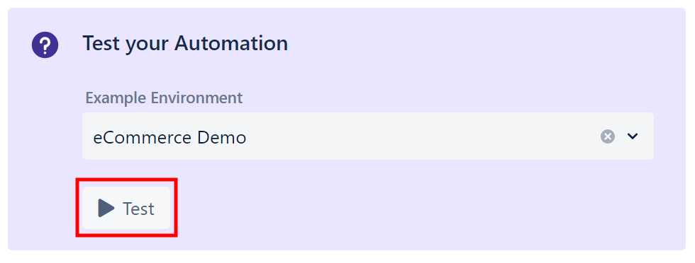 In order to test your Automation, choose an Example Environment and click on the Test button.