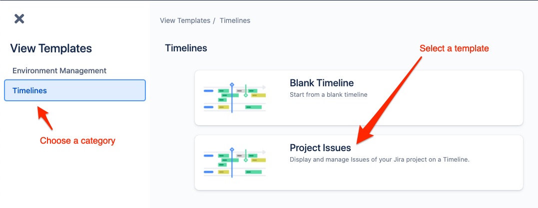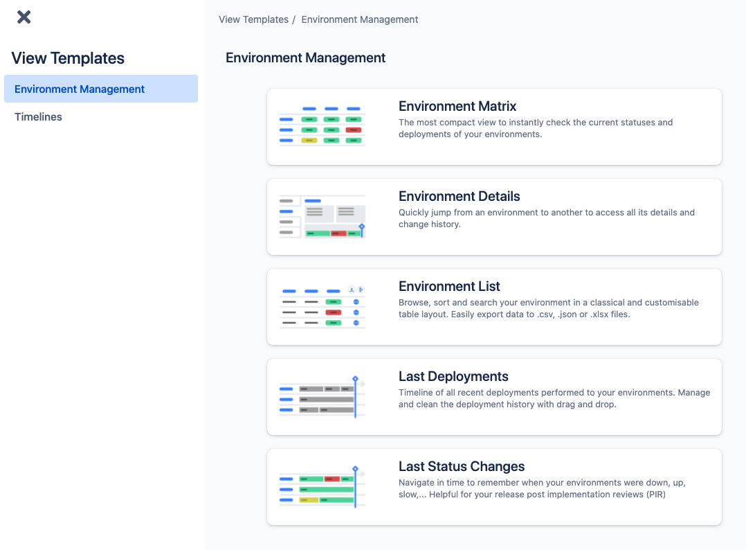 Create new Environment views and Timelines in 2-3 clicks using pre-configured templates.