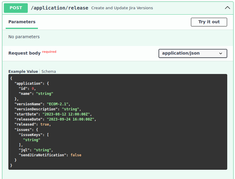 /application/release: Connect your CI using this new endpoint. During your release build, a new Jira version is automatically created with all the released Jira tickets. Your release scope is defined by listing the tickets or using a JQL query.