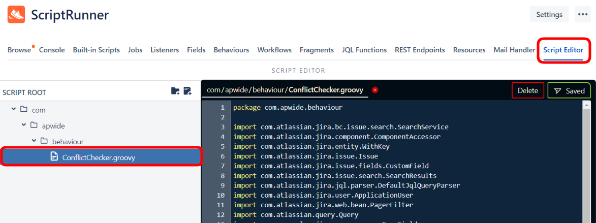 Ensure the folder hierarchy (com/apwide/behaviour) matches the import line in the script.