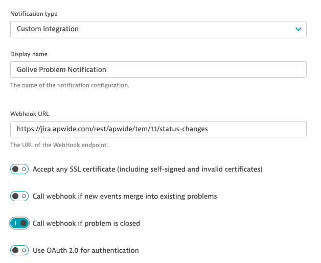 In this section, you will learn how to configure Dynatrace in order to automatically update the status of Golive environments when a problem is opened or resolved by Dynatrace.