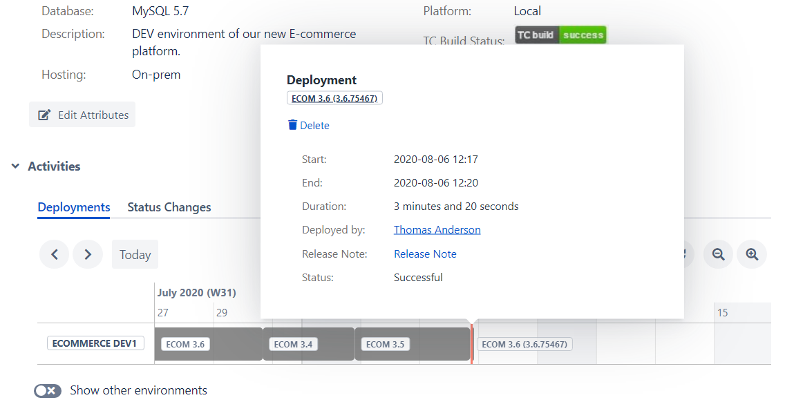 View and browse performed deployments on a timeline at the bottom of the Environment Details Page: