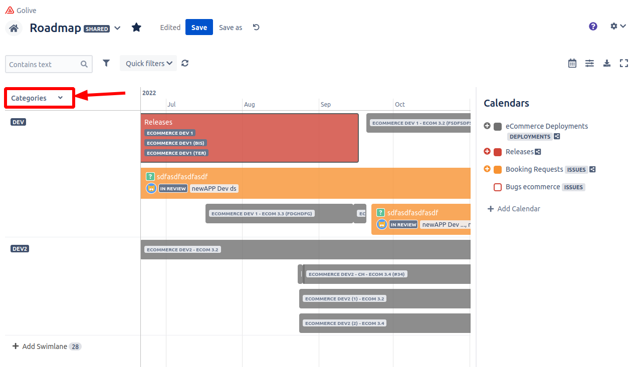 Group your Issues, Scheduled Events, Status Changes and Deployments by Environment Category Swimlanes